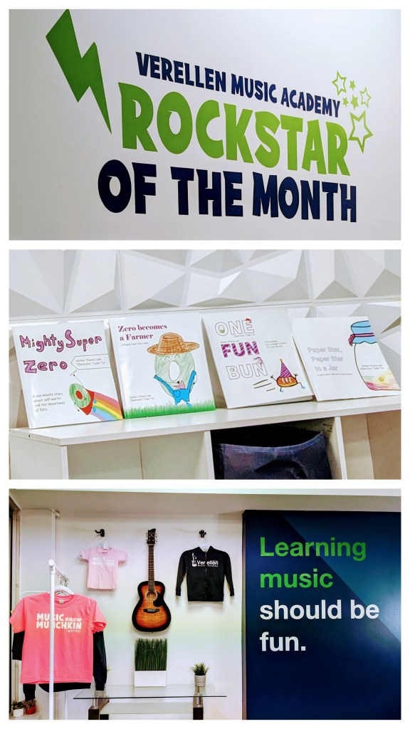 Look where we spotted Mighty Super Zero and our other books! This is Verellen Music Academy in Windsor, Ontario, where learning music is ALWAYS fun! Your kids, and maybe even you, can take lessons for piano, singing, violin, ukulele, drum, guitar and more with very dedicated and enthusiastic instructors at Verellen, and it always be fun. And, now, they even put our books there for the kids to read 🙂 Thank you for the support, Verellen Music Academy!